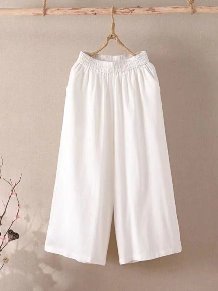 Cropped Linen Pants: Cropped styles finish above the ankle, offering a cool, breezy feel ideal for spring and summer. They highlight footwear and add a playful, modern edge to outfits. This style suits readers who want something fresh, youthful, and weather-friendly.